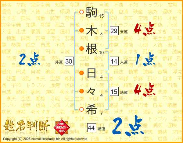 駒木根日々希さんの総運は44画の2点!