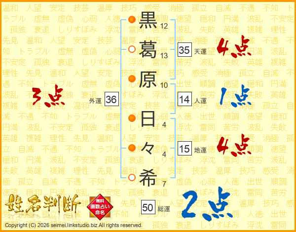 黒葛原日々希さんの総運は50画の2点!