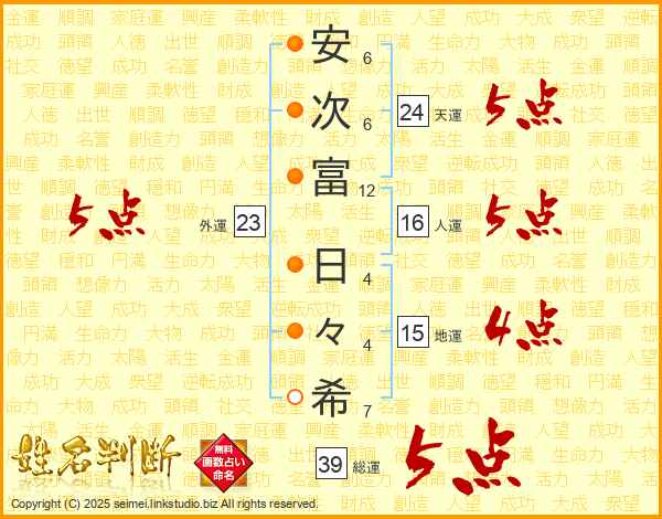 安(6画)次(6画)富(12画) 日(4画)々(4画)希(7画)