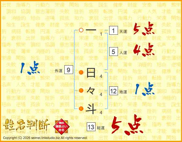 一日々斗さんの総運は13画の5点!