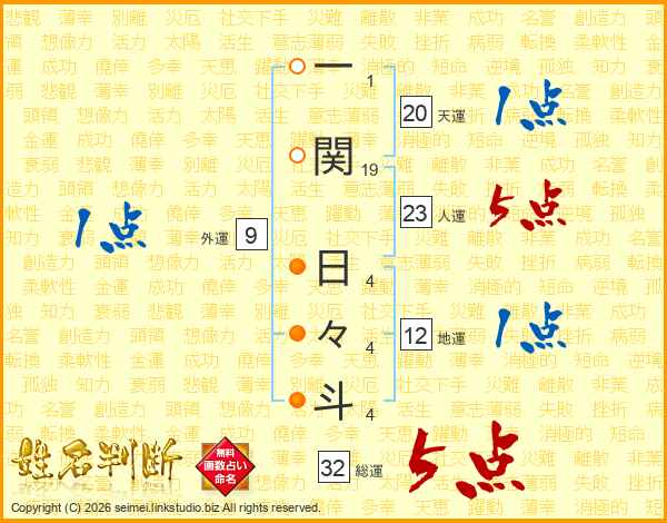 一関日々斗さんの人運は23画の5点!