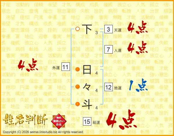 下日々斗さんの総運は15画の4点!