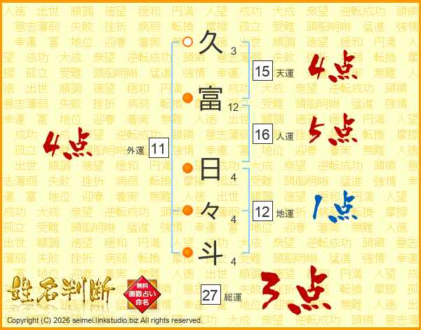 久(3画)富(12画) 日(4画)々(4画)斗(4画)