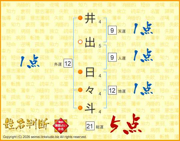 井出日々斗さんの総運は21画の5点!