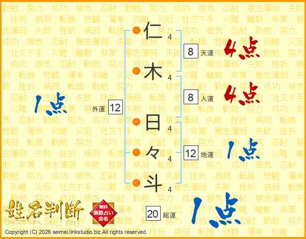 仁木日々斗さんの総運は20画の1点!