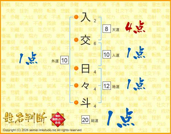 入交日々斗さんの総運は20画の1点!