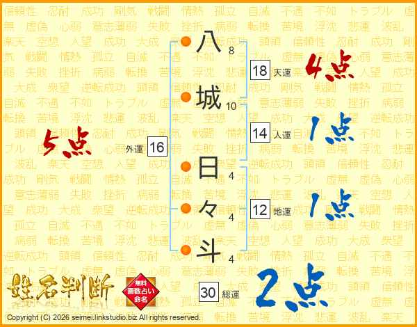 八城日々斗さんの総運は30画の2点!