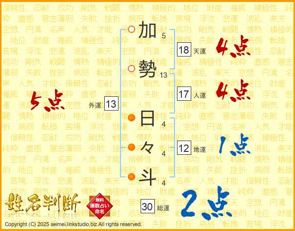 加勢日々斗さんの天運は18画の4点!