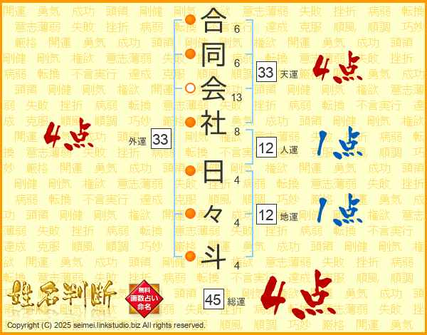 合(6画)同(6画)会(13画)社(8画) 日(4画)々(4画)斗(4画)