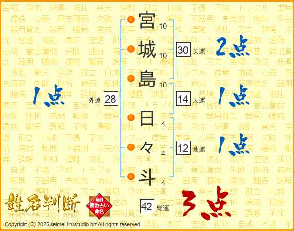 宮(10画)城(10画)島(10画) 日(4画)々(4画)斗(4画)