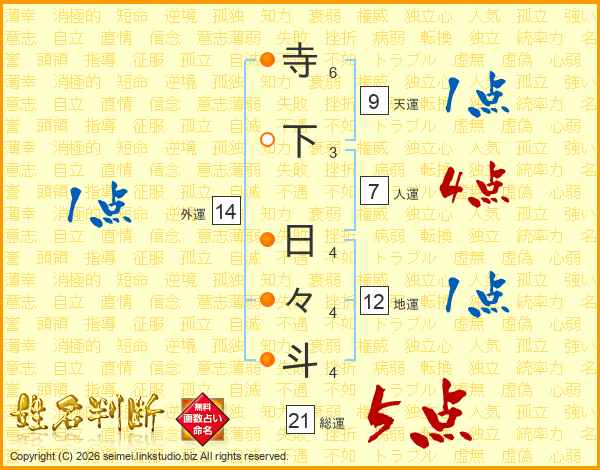 寺下日々斗さんの総運は21画の5点!