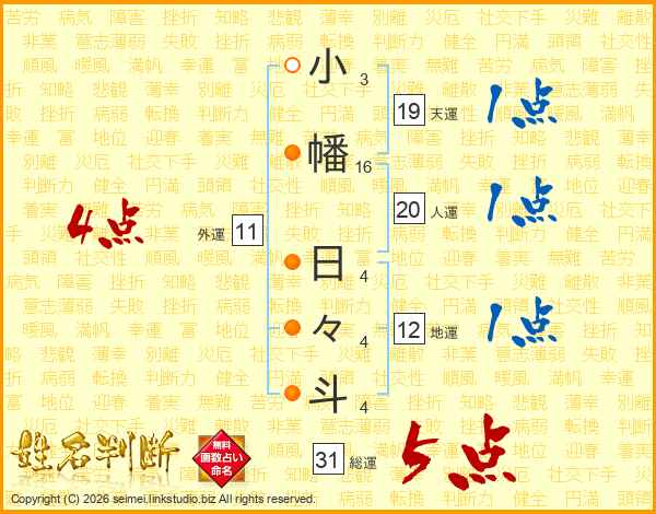 小幡日々斗さんの総運は31画の5点!