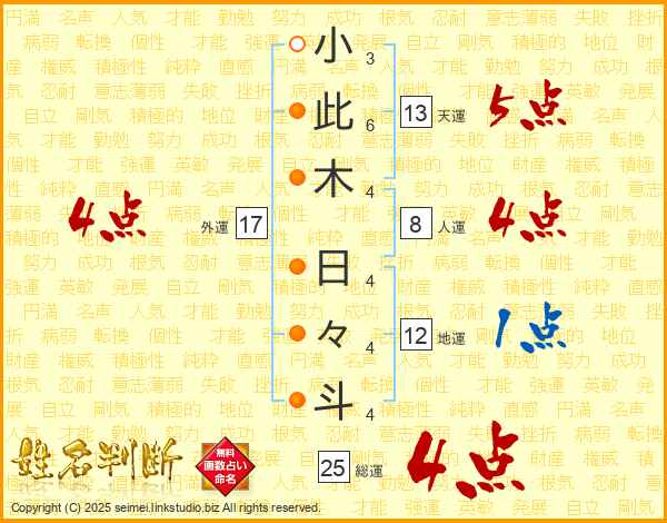 小(3画)此(6画)木(4画) 日(4画)々(4画)斗(4画)
