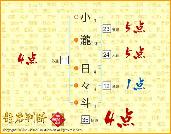 小瀧日々斗さんの総運は35画の4点!