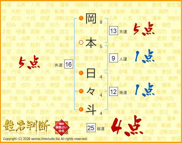 岡本日々斗さんの天運は13画の5点!
