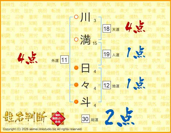 川満日々斗さんの総運は30画の2点!