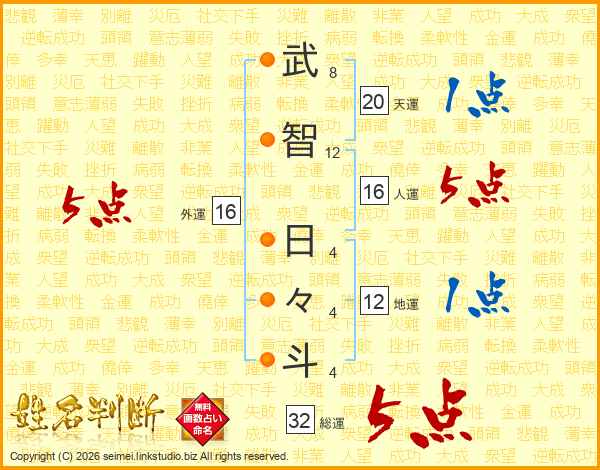 武(8画)智(12画) 日(4画)々(4画)斗(4画)