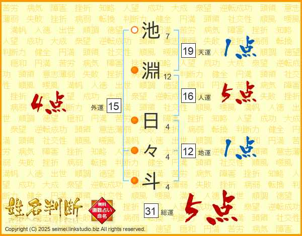 池(7画)淵(12画) 日(4画)々(4画)斗(4画)