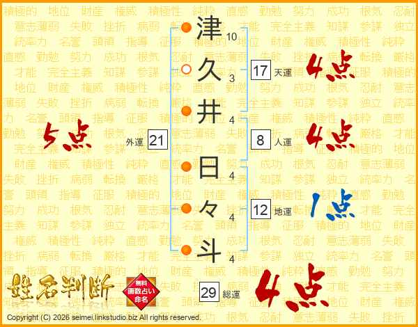 津(10画)久(3画)井(4画) 日(4画)々(4画)斗(4画)