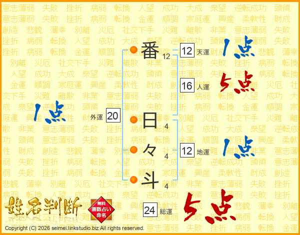 番日々斗さんの総運は24画の5点!