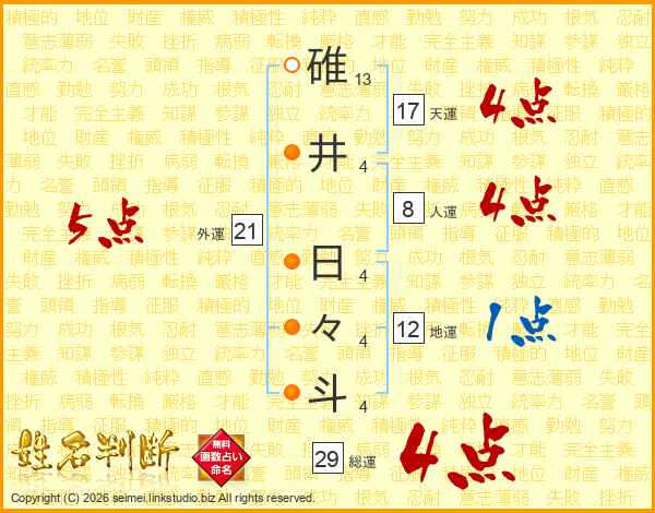 碓井日々斗さんの総運は29画の4点!