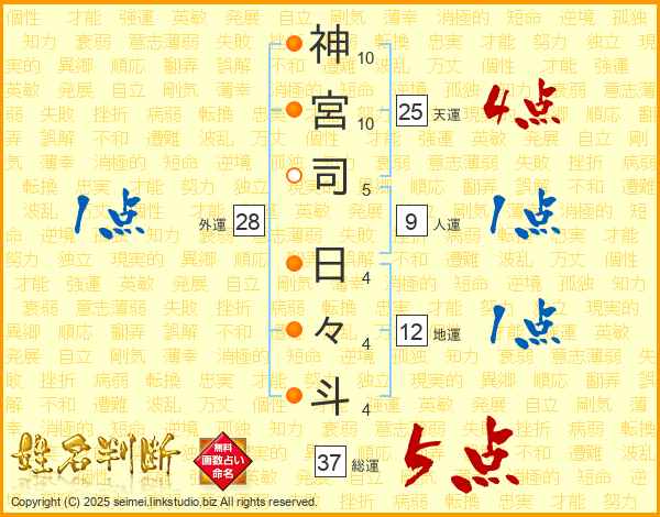 神宮司日々斗さんの総運は37画の5点!