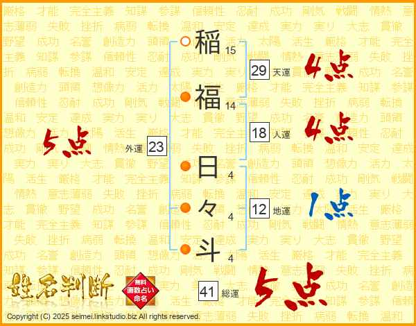 稲(15画)福(14画) 日(4画)々(4画)斗(4画)