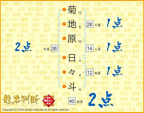 菊(12画)地(6画)原(10画) 日(4画)々(4画)斗(4画)