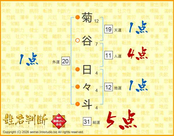 菊(12画)谷(7画) 日(4画)々(4画)斗(4画)