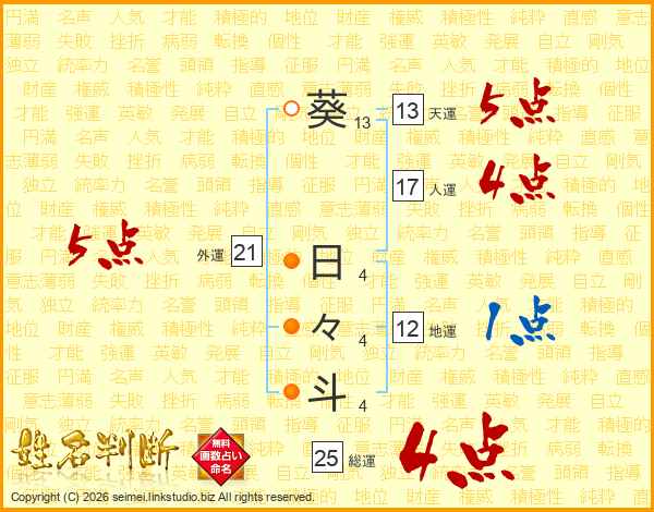 葵日々斗さんの外運は21画の5点!