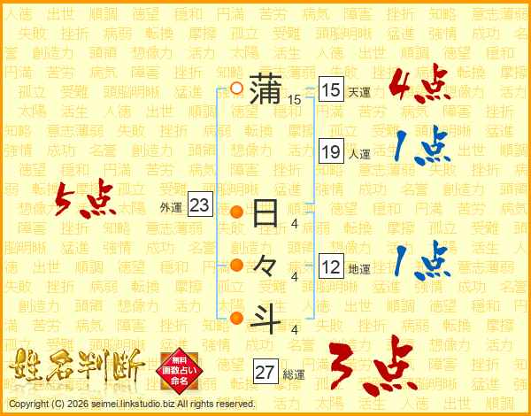 蒲日々斗さんの天運は15画の4点!
