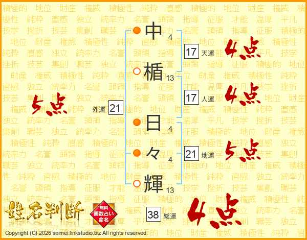 中楯日々輝さんの総運は38画の4点!