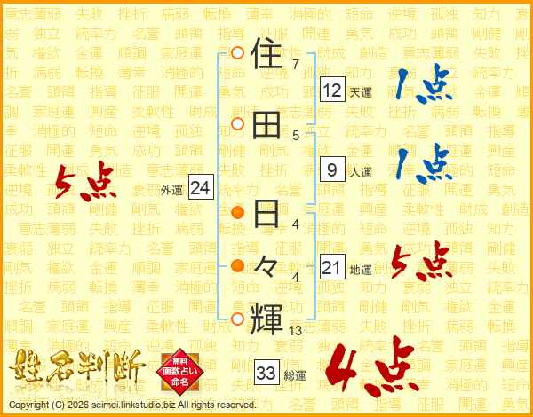 住(7画)田(5画) 日(4画)々(4画)輝(13画)