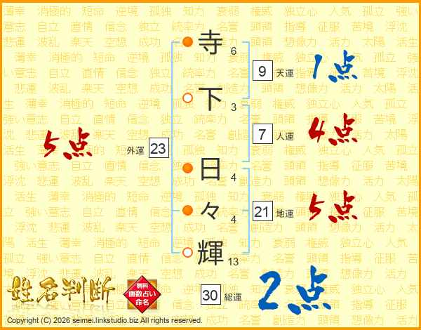 寺下日々輝さんの総運は30画の2点!
