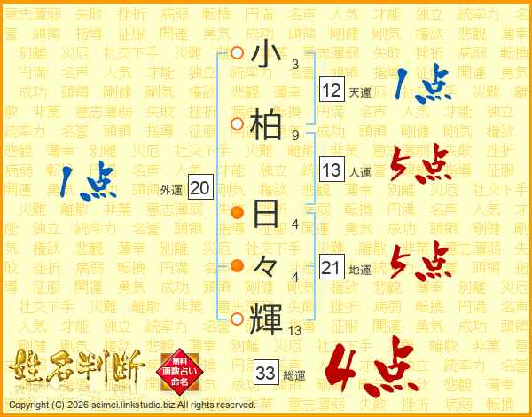 小柏日々輝さんの総運は33画の4点!