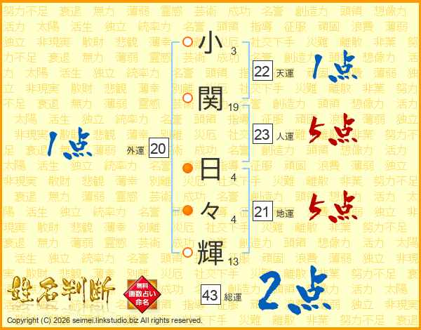 小関日々輝さんの総運は43画の2点!