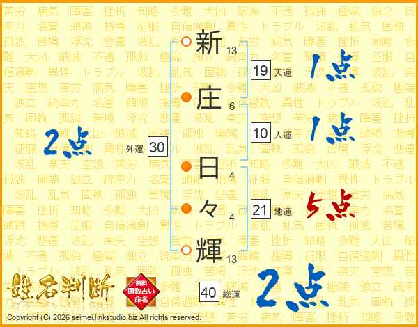 新庄日々輝さんの総運は40画の2点!