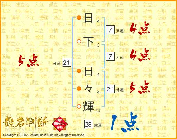 日(4画)下(3画) 日(4画)々(4画)輝(13画)