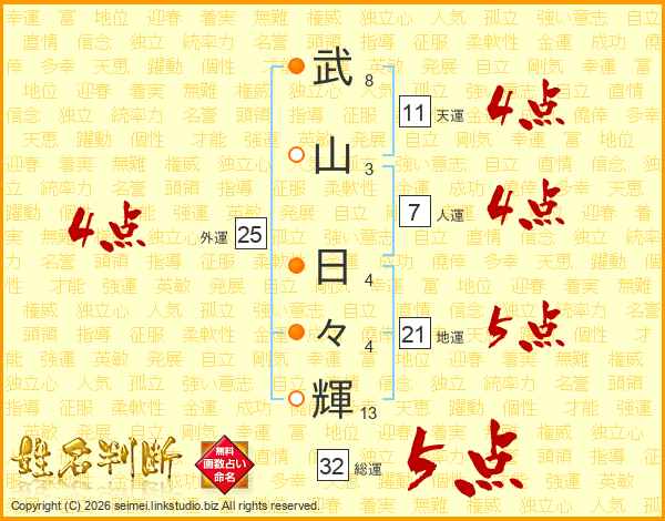 武山日々輝さんの総運は32画の5点!