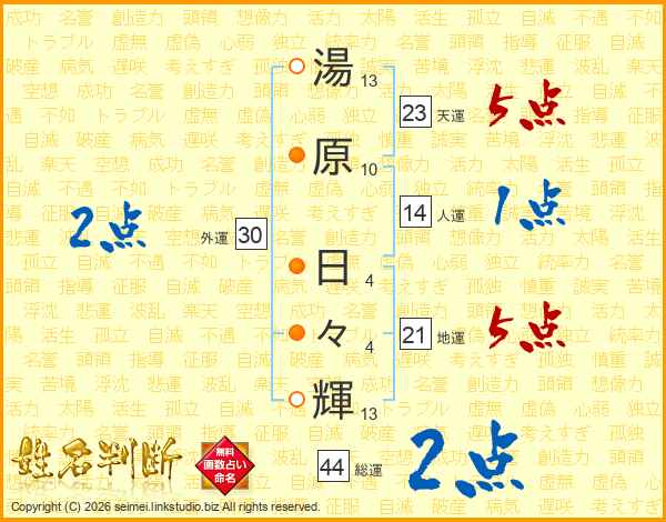 湯原日々輝さんの総運は44画の2点!