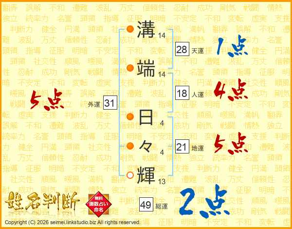 溝端日々輝さんの総運は49画の2点!