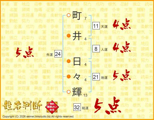 町井日々輝さんの総運は32画の5点!