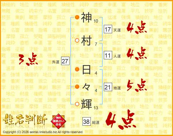 神村日々輝さんの総運は38画の4点!