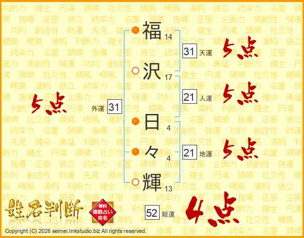 福沢日々輝さんの総運は52画の4点!