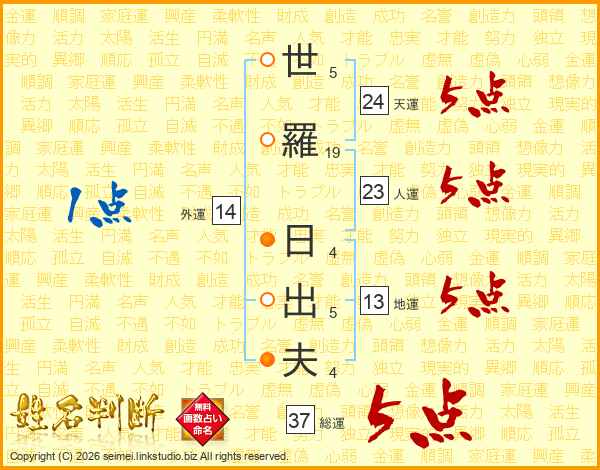 世羅日出夫さんの総運は37画の5点!