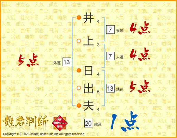 井上日出夫さんの天運は7画の4点!