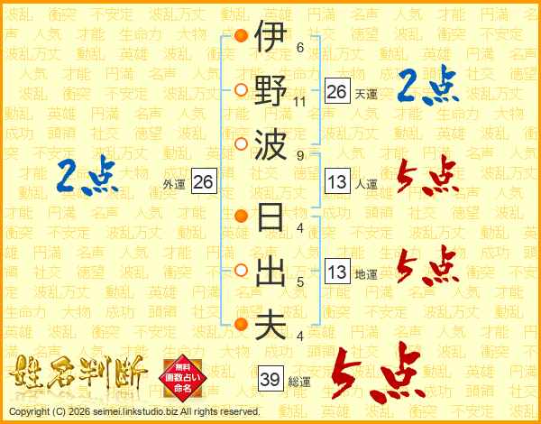 伊野波日出夫さんの総運は39画の5点!