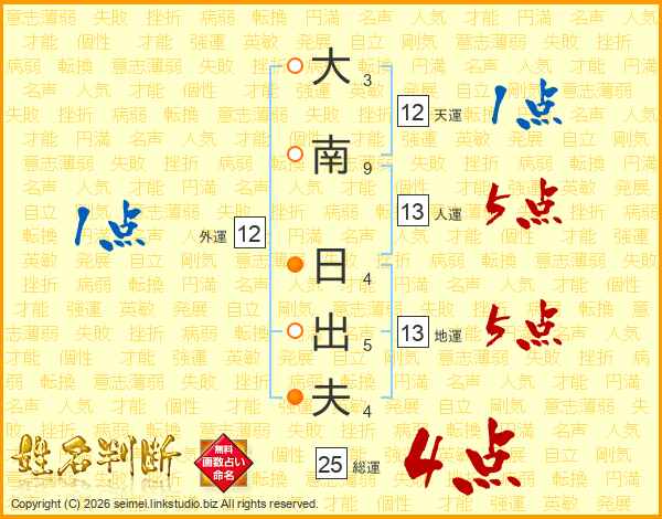 大(3画)南(9画) 日(4画)出(5画)夫(4画)