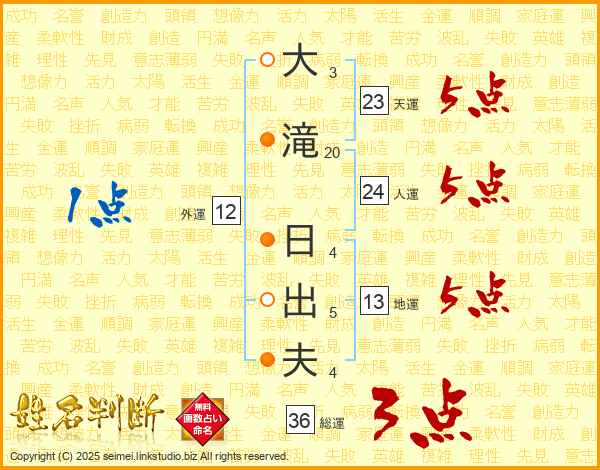 大(3画)滝(20画) 日(4画)出(5画)夫(4画)
