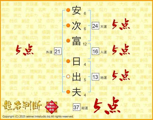 安次富日出夫さんの総運は37画の5点!